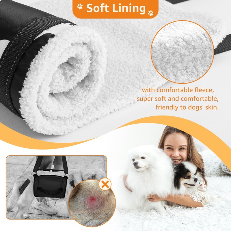 - 【Soft and Comfortable】The lining of the dog support harness is made of super soft fleece material, ensuring that your dog's abdomen is cushioned and comfortable when moving.The sturdy Oxford cloth outer layer resists damage from most conditions and ensures durability.