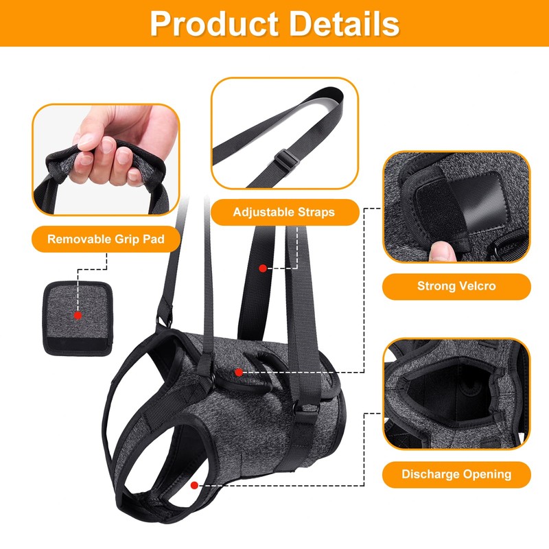 - Dog Back Leg Support:This Dog Rear Leg Assist Band is designed for dogs with leg injuries, disabilities, post-operative rehabilitation or weak rear legs. It can be used for daily walks, to assist your dog to cross obstacles when encountering stair steps or steep slopes, and to assist your dog in travelling to and from transport. This dog harness has been improved to ensure that it will not easily shift during walking.