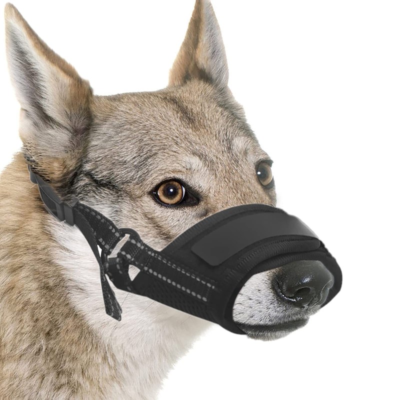- Dog Friendly-Our dog muzzle adopts a new upgraded eyelet fabric, which is very breathable and comfortable, it is applicable all year round (even in hot summer) and can reduce the burden on your dog. Comfortable for your dog to wear and make it easier to accept this, doesn't leave any sores or anything on the dogs. Also designed with reflective straps in the muzzle, it can reflect light from torch or vehicle, improving your dog safety at night.