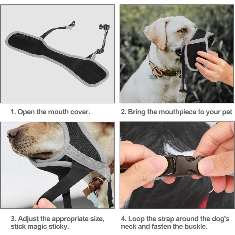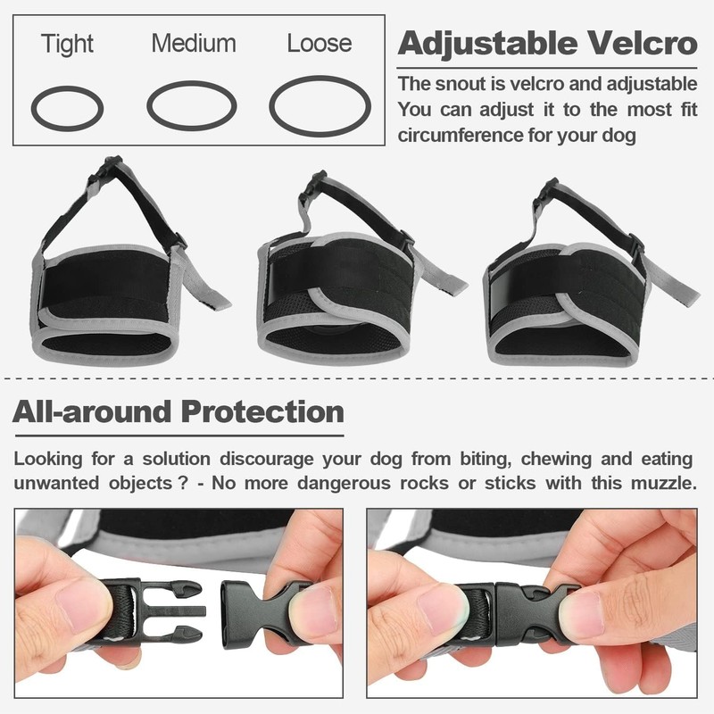 - Easy to Use & Maintain: The double Velcro and buckle design makes it easy to put on and take off. Excess straps can be secured with a hook and loop fastener for a neat fit. The muzzle is machine washable and easy to clean, ensuring it stays hygienic for your pet