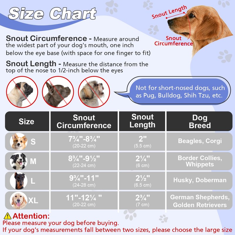 - ATTENTION: Please help your dog get used to the muzzles by rewarding treats repeatedly. And remember that the muzzle should not be used for punishment.
