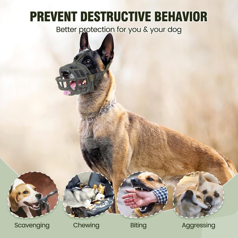 - 【TOUGH & DURABLE】Crafted from quality odorless flexible rubber, ensuring robust durability that can withstand various activities of large dogs and long-lasting for daily use. This basket muzzle is lightweight enough for medium large dogs without burdening or irritating their nose.