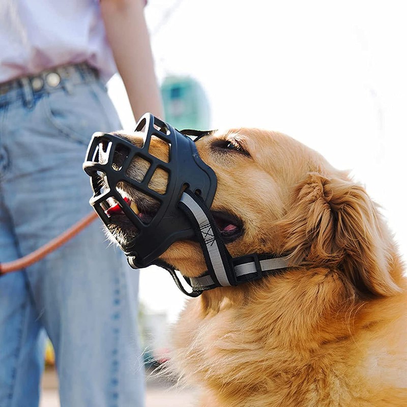 - [All-Around Protection] - The basket design gives an all-around cover of the dogs' mouth, in that way the dogs can keep away from biting and barking or eating dirty foods. You can get rid of the annoyance that your dog chewing your leather seat in your car. There is a reflective strip on the webbing, which can reflect light when walking in a low-light environment or a dark environment with a vehicle, improving the safety of walking the dog at night.