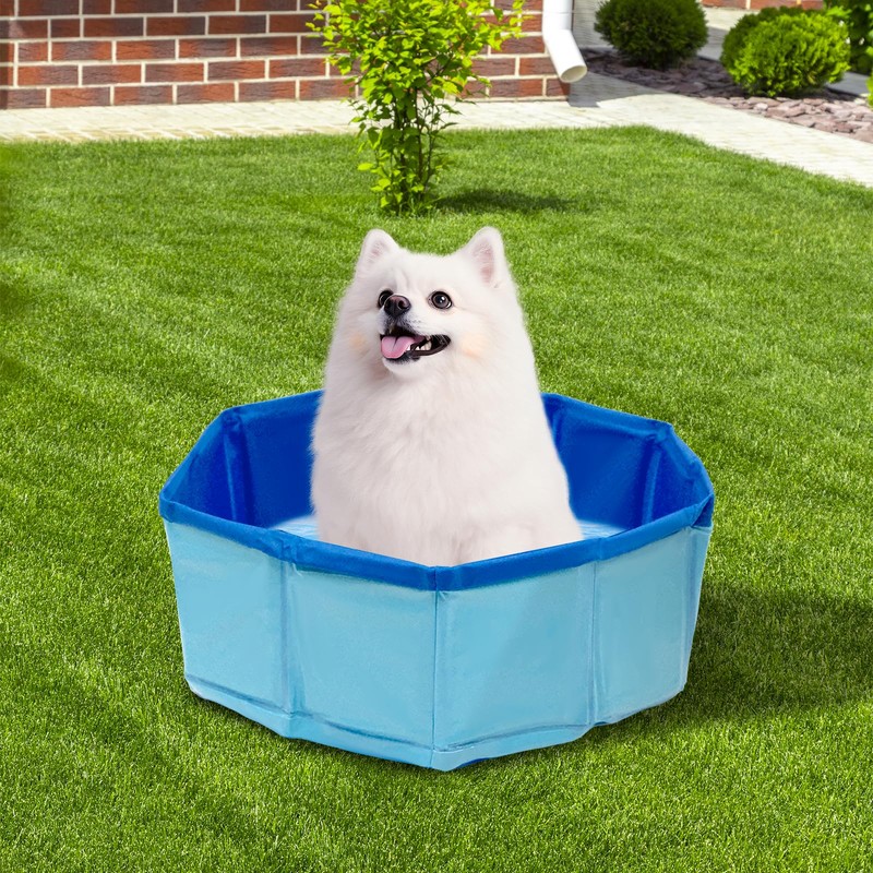 This compact dog paddling pool is designed for small dogs and puppies, offering a convenient solution for outdoor bathing, cooling off, or rinsing after a walk. Made from durable, pet-safe PVC, it resists tearing and stands up well to repeated use. Its foldable structure allows easy storage and transport, making it ideal for use at home or on the go. The smooth interior is quick to rinse and clean, with no need for a drainage hole. Whether placed in the garden, patio, or taken on a beach trip, this pool offers a splash-safe space to keep your pet refreshed and clean.
