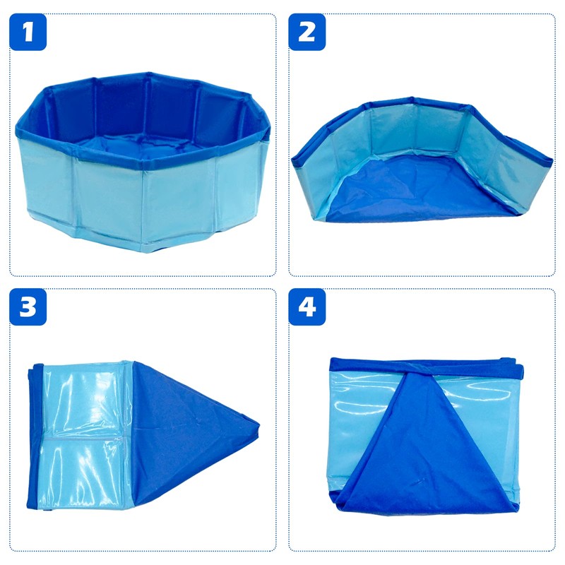 - Foldable and Space-Saving: The foldable design allows the pool to be quickly collapsed and stored away when not in use. Perfect for pet owners with limited storage or who need a convenient travel-friendly solution.