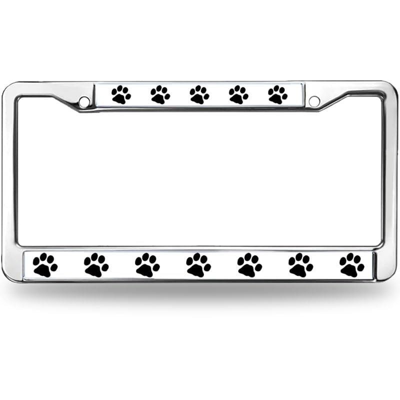 Dog Pawprint Aluminum License Plate Frame Paw Prints License Plate Frame Chrome 2 Holes