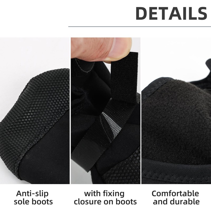 - Easy to wear: The tightness of the dog sock paw protector is adjustable, with a practical magic sticker closure that keeps the paw covers securely in place during active play. Soft fleece lining ensures comfort without constriction. Ideal for indoor and outdoor use