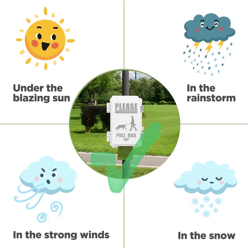 - DURABLE MATERIAL : The dog waste bag storage station is made of all-weather ABS (acrylonitrile butadiene styrene) material, which can handle bad weather and not easy tobreak, it is the first choice for outdoor dog poop bag dispenser