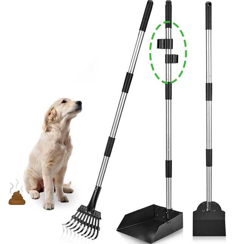 • ♥MULTI-FUNCTION: You can combine the rake and dustpan to clean up the dog poop at home or in the yard, also a perfect tool rake for lawns, grass, dirt and gravel. A spade and dustpan combination to clean up garbage on the ground and to level the ground and dog kennels, keep them clean. Owning a pooper scooper no more countless plastic bags, and are friendly to the environment.