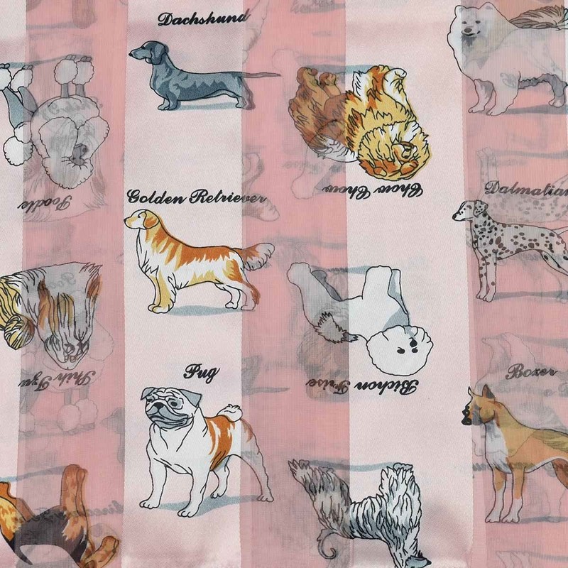Dog Print Satin Stripe Scarf, Pink