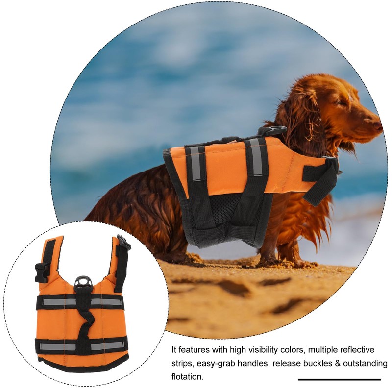 doggie life jacket Its strong handle design is constructed to add strength and durability for pulling dogs out of the water.dog swim vest with handle This item is manufactured with top-class material for durable and long-lasting use. vest for swimming It features with high visibility colors, multiple reflective strips, easy-grab handles, quick release buckles & outstanding flotation