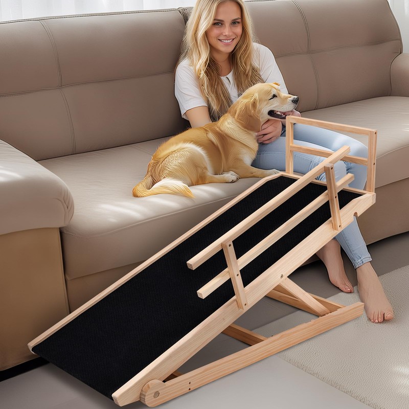 - STURDY & DURABLE: Our pet ramp for dogs and cats is specially made very well - solid wood construction and sturdy stainless steel fasteners, which has been tested to support up to 200lbs. When they jump off the bed, sofa, and sofa, there is no need to worry about getting injured, which provides safety for your pet.