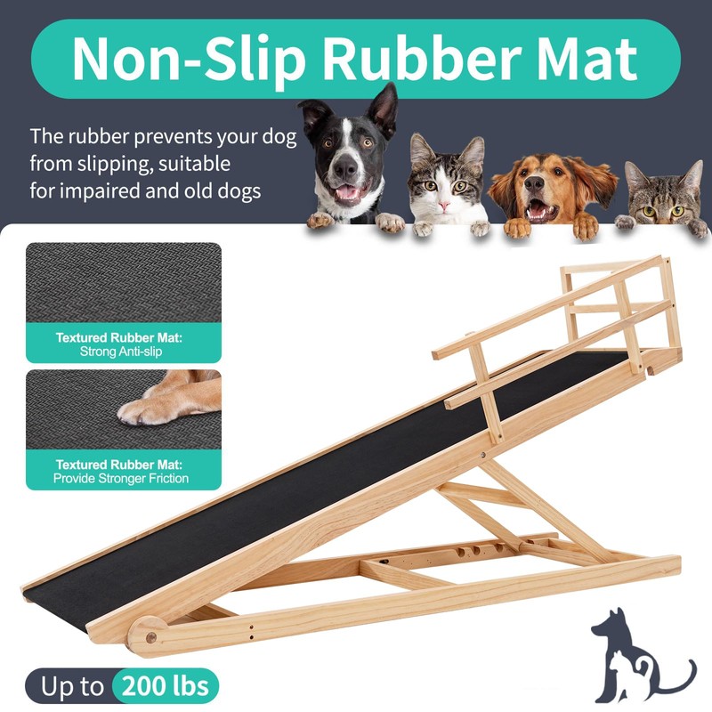 - HIGH TRACTION & ANTI-SLIP - Upgrade Rubber Mat provides anti-slip surface which gives incredible traction to your dog. Built from sturdy wood and equipped with stainless steel fasteners to provide heavy-duty support and maximum durability, It can support pets up to 200 pounds.