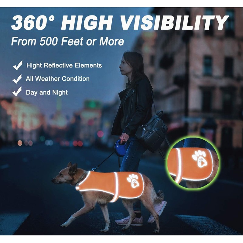 - 【Safe and Secure】Extremely Eyecatching color provides high visibility and safety to Your beloved, avoiding accidents from other hunters and cars in outdoor environment like dark bushes or snowing forest. With silver reflective stripes and special paw print, it makes your dog highly visible and can be seen from 500 feet, keeping your dog safe and secure when walking, jogging, training and hunting.