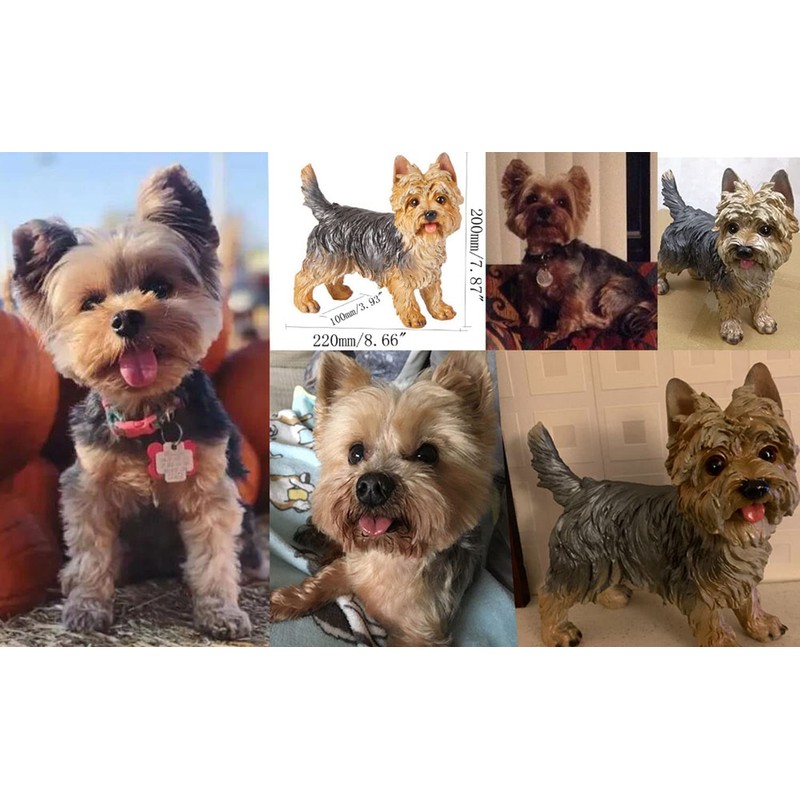 - Material: Resin .Color: yellow and gray.Yorkshire Terrier Statue Home or Garden Decoration,perfect for display indoors or out.