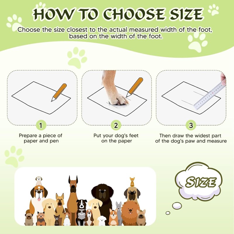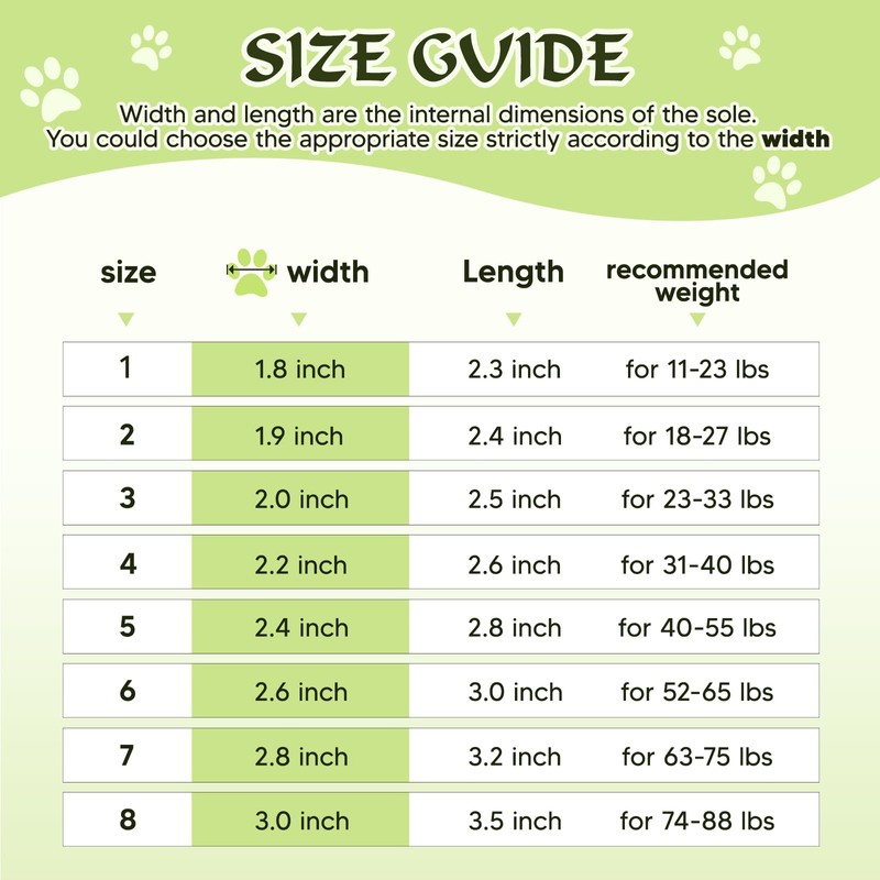 - [SIZE GUIDE] - Clould you be sure to measure width of your dog's paws carefully and check our size chart before purchasing to ensure you are getting the right size. Width is key to choosing the correct size for your dog.