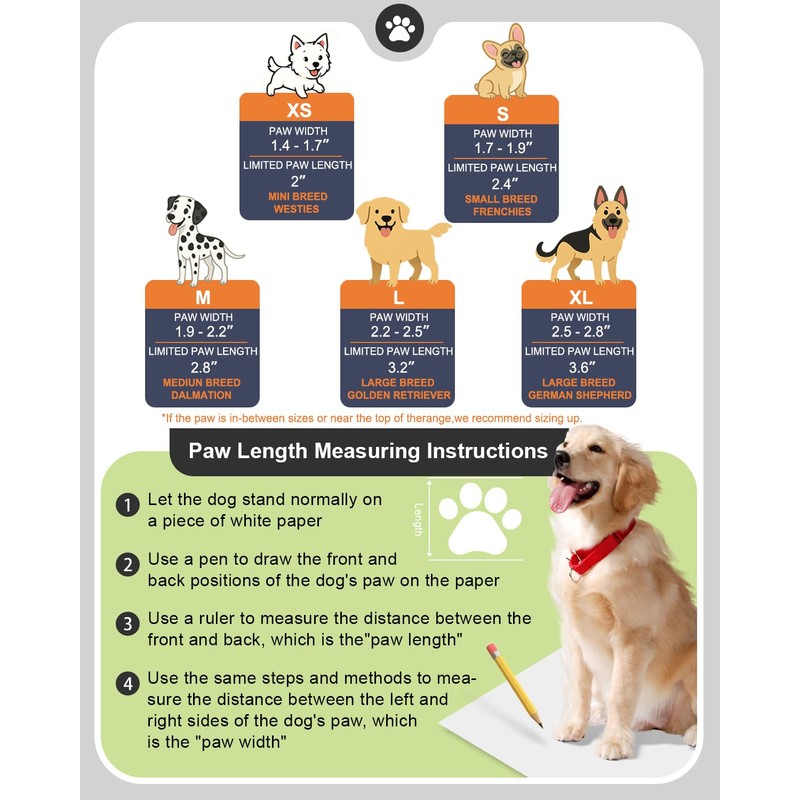 - SIZE -- Please be sure to measure the width of your dog's paw carefully, the weight can only be used as an additional reference. You are welcome to contact us at any time with any questions.