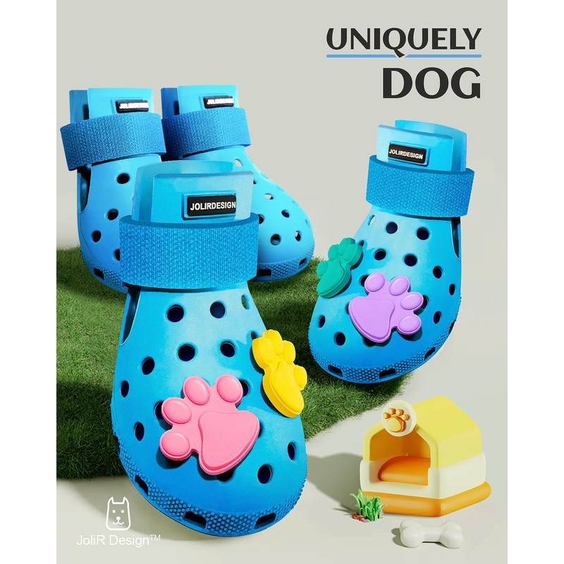 - NON-SLIP & STUEDY -- The bottom of the waterproof dog shoes adopts a non-slip design to provide a stable grip so that the dog will not slip and get injured in the rain. The dog boots are made of sturdy rubber to prevent sharp thorns from hurting the dog's paws
