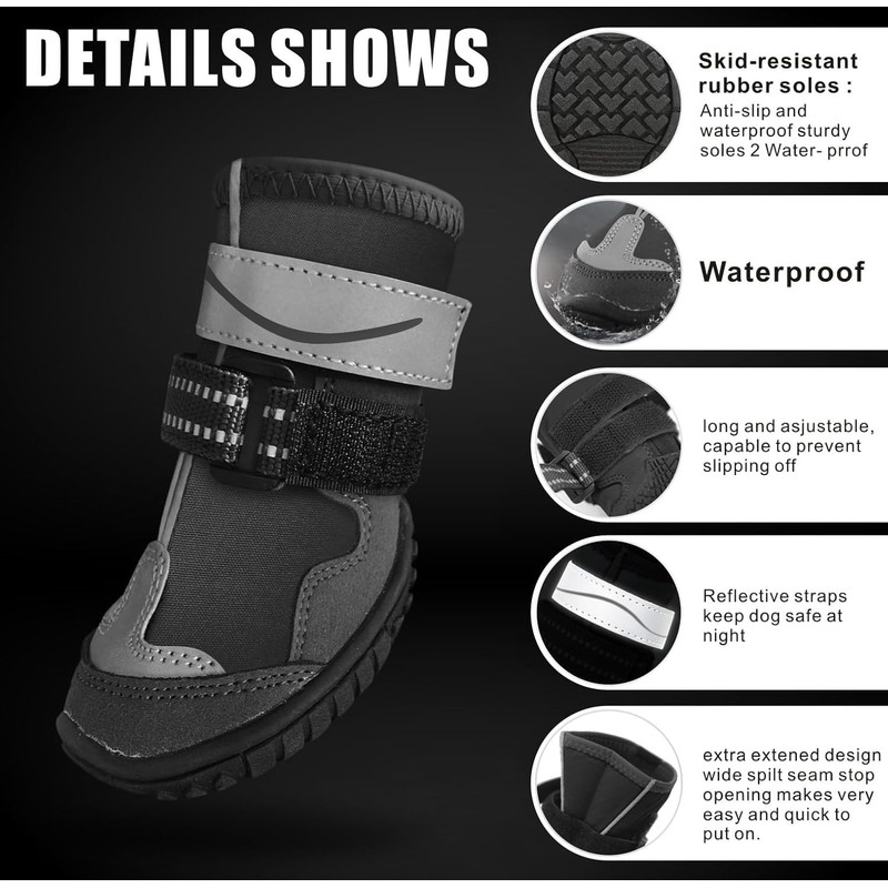 Dog Shoes, Otunrues Dog Shoes for Small Medium Large Dogs, Anti-Slip Dog Boot with Reflective, Waterproof Dog Booties & Paw Protectors for Winter Snowy Hot Pavement Day (Black,XS)