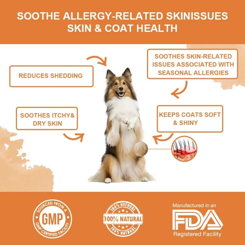 2. [Repair Damage in Dryness]: The product helps dogs repair damaged or naturally occurring dryness, including issues from seasonal changes or minor skin diseases, through its nourishing properties.