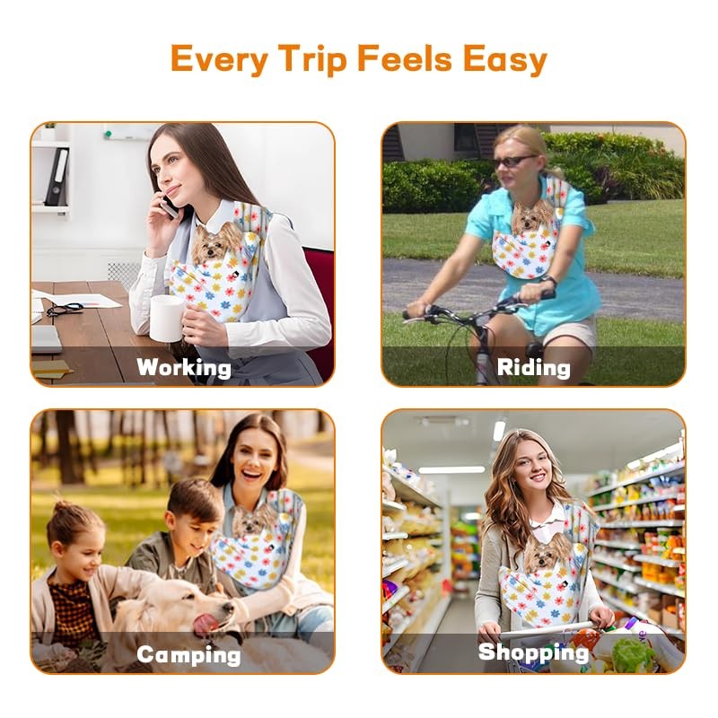 - Secure & Adjustable Design : Built-in safety strap with adjustable length keeps your pet securely in place while allowing you to set their most comfortable position. Whether used as a small dog sling carrier, cat carrier, kitten sling, or dog travel bag, this puppy sling ensures safety on the go.