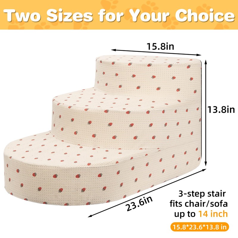 Dog Stairs for Small Dogs, Foam Steps for Small Dogs & Cats, 3 Steps Dog Ramp for High Beds, Couch, Window, Sofa, Pet Stairs with Removable Washable Cover, Non-Slip Sturdy Pet Steps, Strawberry