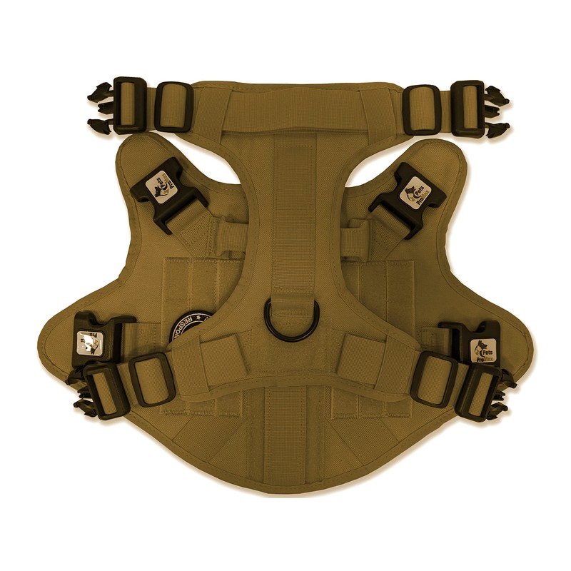 - MILITARY STYLE TACTICAL DOG HARNESS: Army style dog tactical harness (military vest for dogs). This dog harness provides full coverage to your dog, protect your dog during training, walking, outdoor hiking, mission sports.