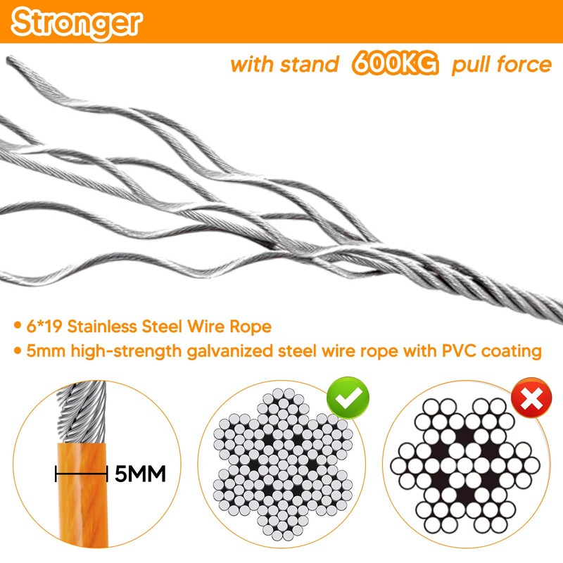 - Superior Quality - The dog tie out cable is crafted from high-quality stainless steel wire rope, professionally tested to withstand up to 5 KN of pulling force. Its ultra-durable design accommodates small, medium, and large dogs, providing ample freedom of movement while ensuring their safety.