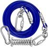 Dog Tie Out Cable WATFOON, 40ft 50ft 65ft 75ft Dog Leash Run Tether with Swivel Hook and Shock Spring, Heavy Duty Dog Runner for Yard Camping Traning Outside for Dogs Up to 300lbs (Blue, 65ft)