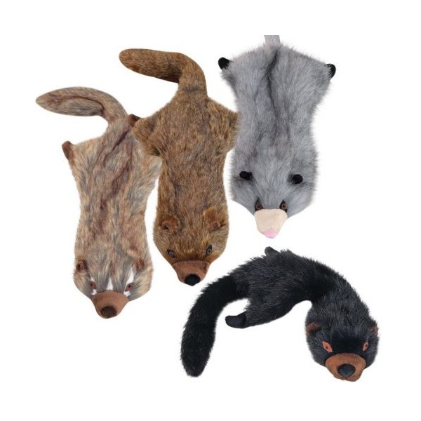 - Realistic faux fur toys each contain two squeakers