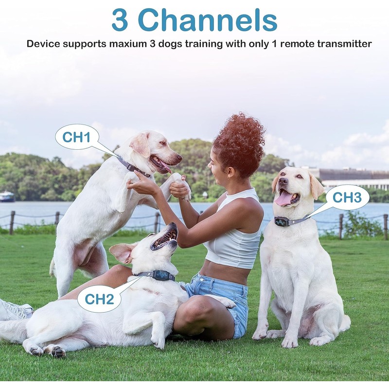 - Support 3 Channels & 2500ft Remote:it has 3 channels to choose from, so you can train 3 dogs at the same time!dog shock collar with remote up to 2500Ft range allows you to train your dogs easily indoors/outdoors
