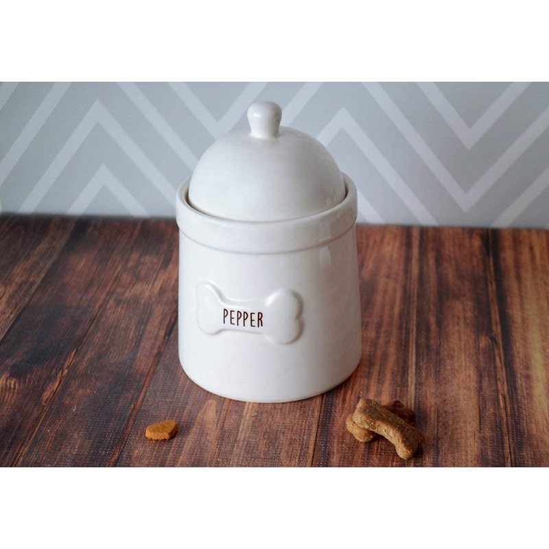 - This personalized dog treat jar is a new version of our popular dog treat jars. It would make a perfect gift for your favorite pet!