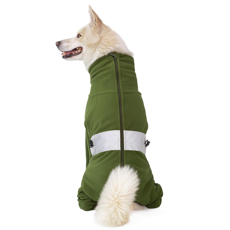- EASY to TAKE ON & OFF - AITOLI large dog winter coat is tightly closed by zipper on the back, which is easy to take on and off. For male dogs, the dog polar fleece coat vest designed with circle part on the chest bottom of suit, which can be cut for convenient pee or poo and keep the suit neat and tidy. Please use water under 30 degrees to wash and let them dry at a ventilated place.