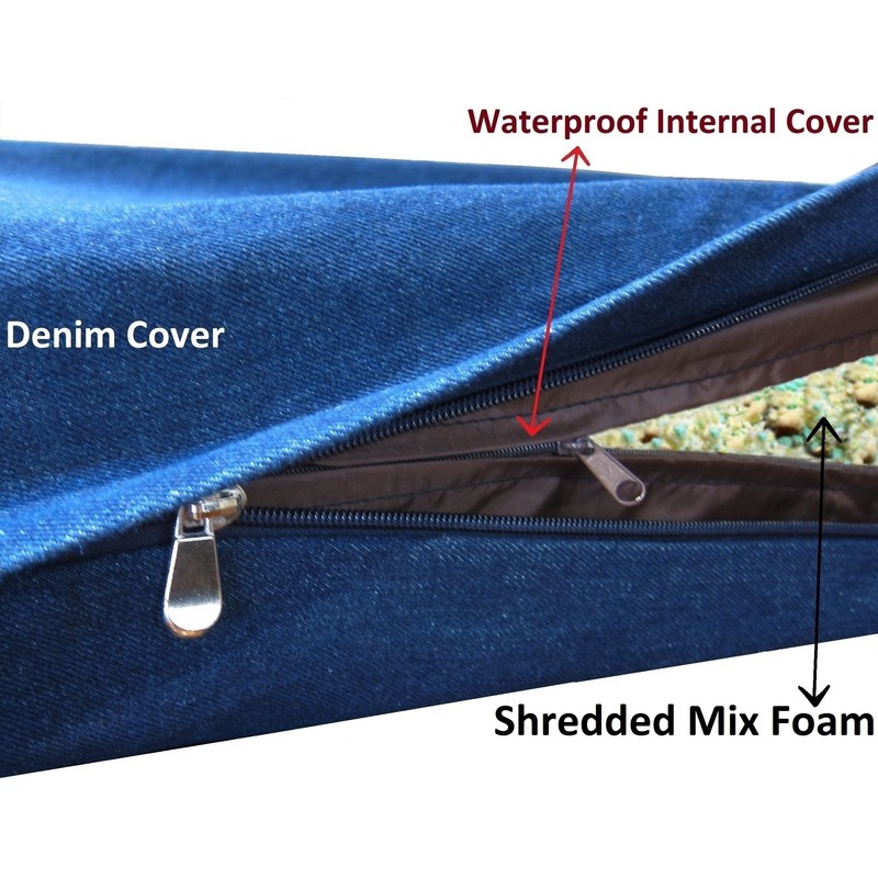 - 2 LAYERS OF COVER - The bed comes with breathable waterproof internal cover to secure the stuffing and a strong 13 oz/yard denim fabric external cover in blue color with extra stitching to prolong the life of the bed, wash after wash. The removable external cover is machine washable / dry-able.