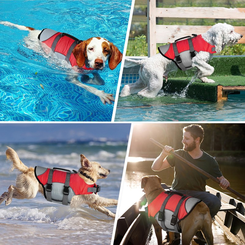 - EASY RESCUE : Life jackets for dogs feature a sturdy rescue handles that allows for quick and easy lifting in case of emergency, aiding in teaching your dog to swim confidently. D-ring is convenient for dog leash installation if you want to walk dog