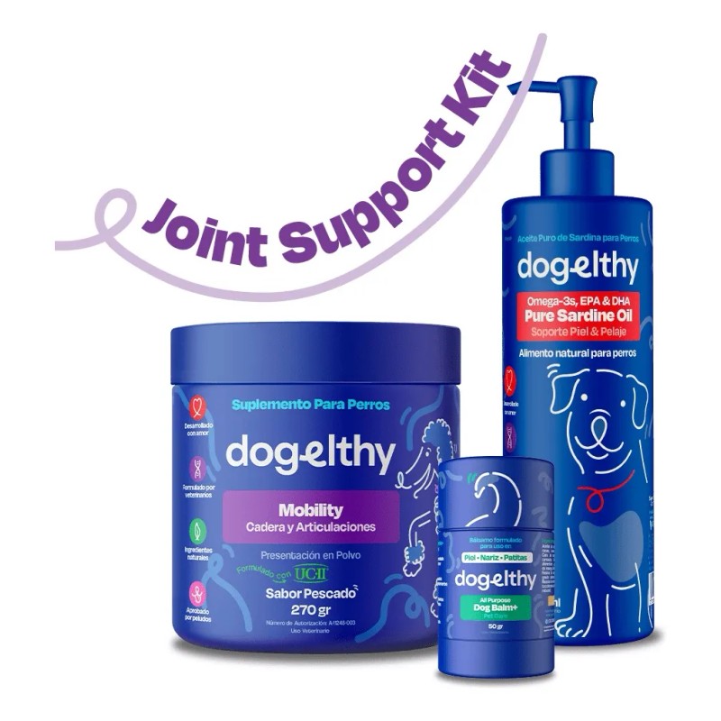 Dogelthy Joint Support Kit Mobility Aceite Sardina, Dog Balm