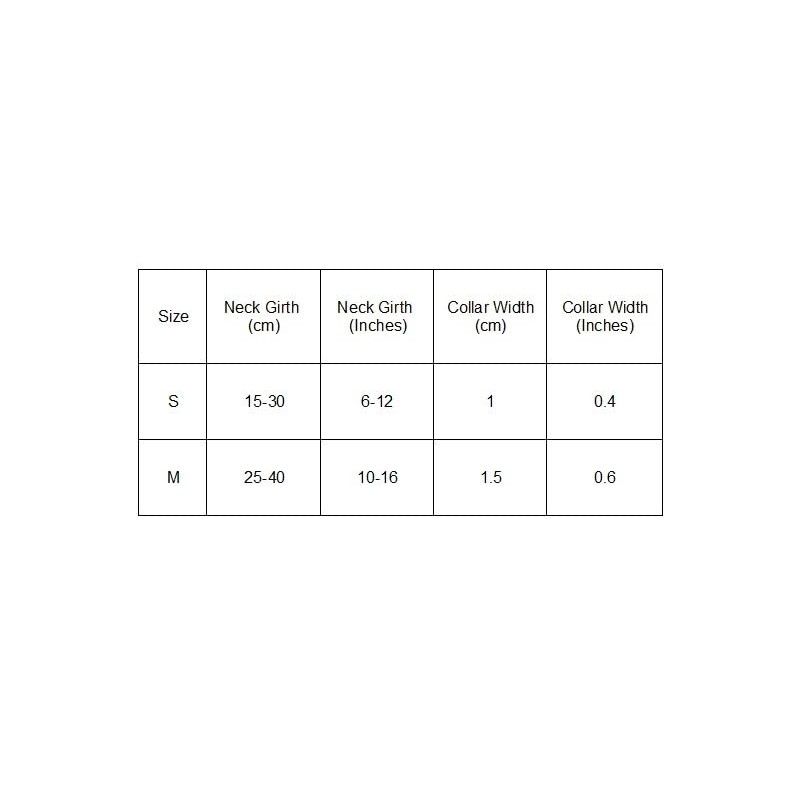 Size S Collar Length: Adjustable to fit neck circumference 15-30cm (6-12 Inches) Size S Collar Width: 1cm (0.4 Inches)