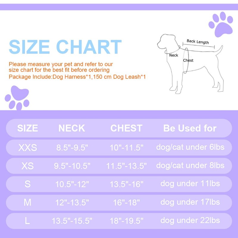 - 【Measure Before Ordering】To better fit your dog Please measure your dog's size and compare with our size chart before placing an order,if in between sizes, please order one size up.This easy walk dog harness is suitable for extra small to medium sized dogs,puppies and cats,such as Boston Terrier,Maltese,Pekingese,Chihuahua,Poodle,Teddy,Schnauzer and so on.