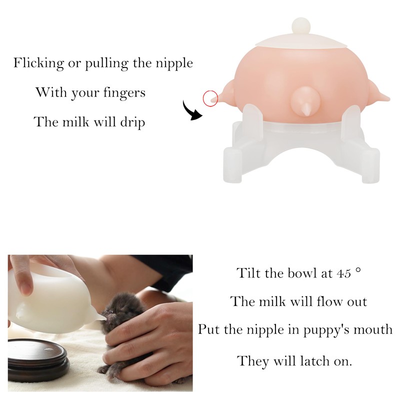 - puppy feeding station: It imitates the size of its mother's breasts and the real nipple touch, making the puppy feel like the milk feeder is its mother. It is a special kind of puppy's bottle. Incorporating puppy formula milk replacement can simultaneously feed multiple puppies, reducing the workload of breeders