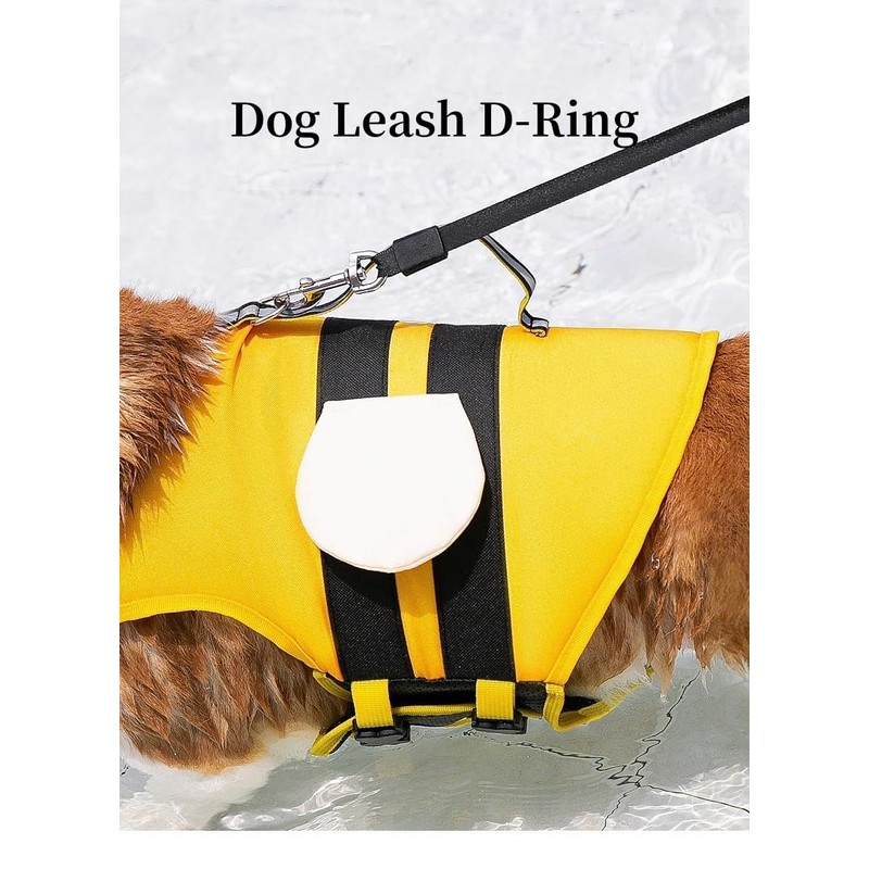 Equipped with a sturdy rescue handle, facilitating easy lifting and retrieval of your dog from the water in emergency situations.Engineered with high-buoyancy materials, this life jacket provides optimal flotation to keep your dog buoyant and secure in the water.Featuring a durable leash attachment loop, allowing you to keep your dog close by and under control while enjoying water activities together.Enhanced with reflective strips, offering increased visibility in low-light conditions or during nighttime outings, ensuring your dog remains visible and safe.Designed with adjustable straps for a snug and comfortable fit, allowing for customization according to your dog's size and body shape, ensuring maximum safety and comfort.