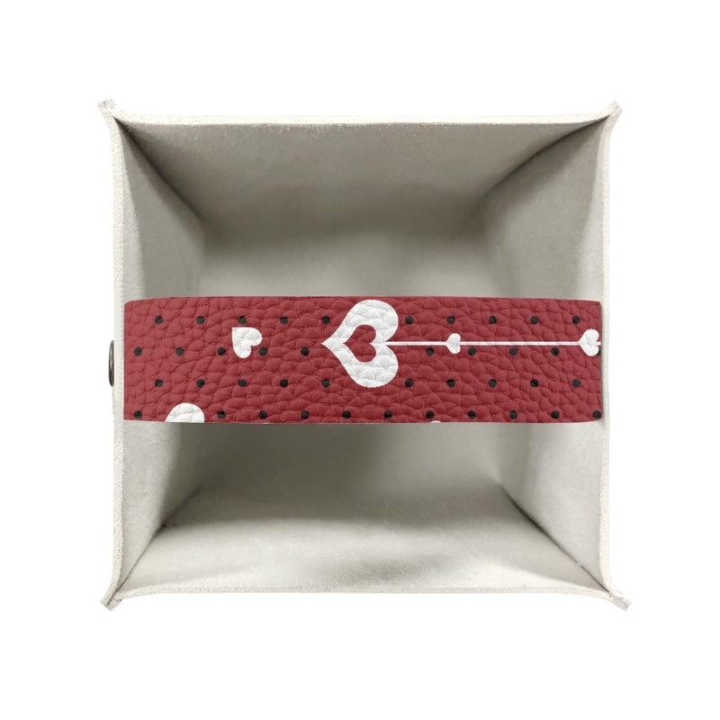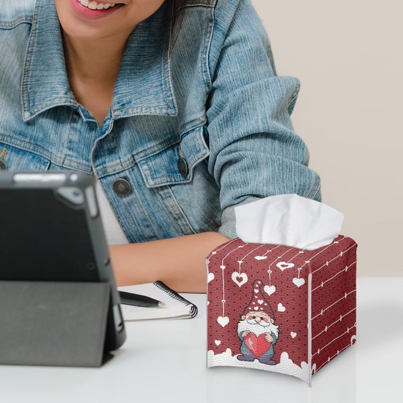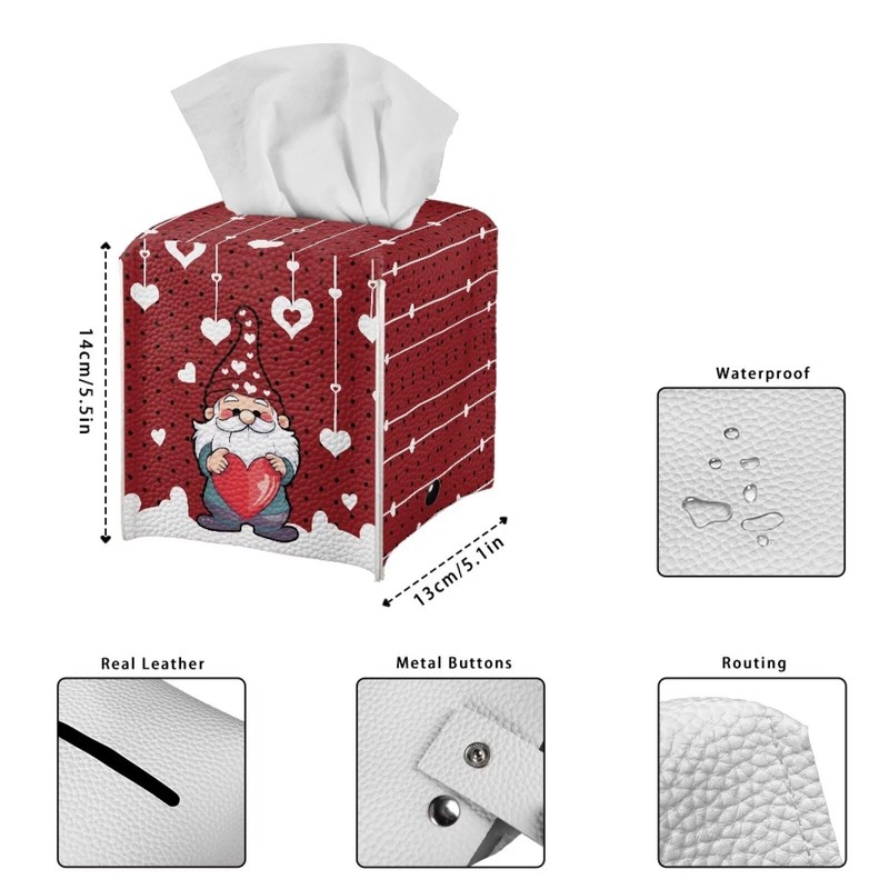 doginthehole Valentine's Day Decortaions Tissue Box Cover Holder Square with Bottom Belt, Valentines Gnomes Red Hearts PU Leather Decorative Organizer for Tabletop, Bathroom, Car