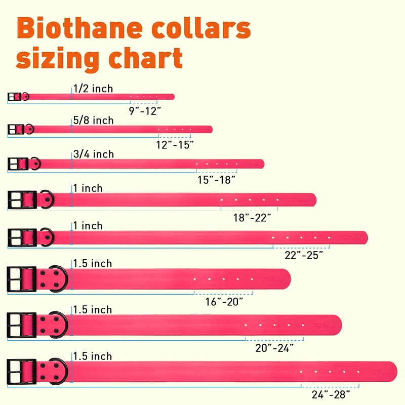 - ACCOMMODATES ALL BREEDS and dog sizes, with 8 lengths and 5 widths to select from. Widths from 0.5” to 1.5” and lengths from 9” up to 28” offer a collar to fit small, medium, large and giant dog breeds.