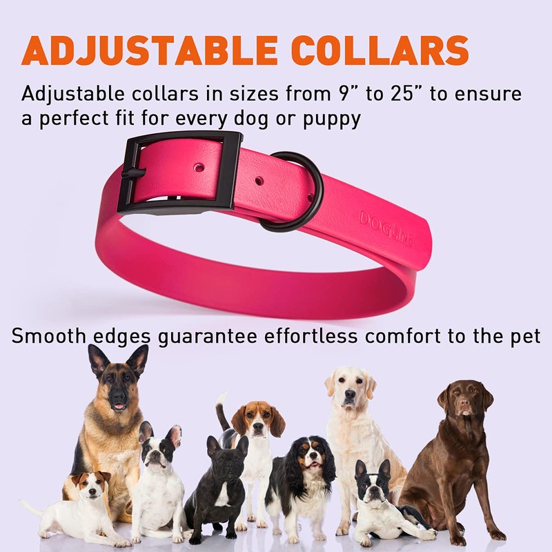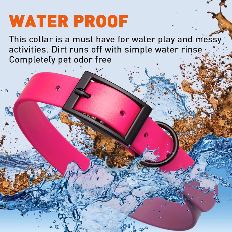 - FREE YOUR DOG to romp in puddles and retrieve from lakes with the Dogline Biothane Waterproof Dog Collar. This water-repellent collar stays dry and odor-free, without shrinking or losing flexibility.