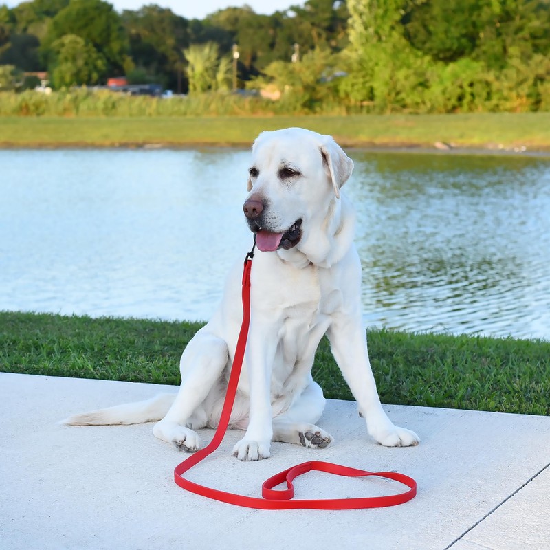 - More durable than leather dog leashes, the 4-foot and 6-foot Biothane dog leash boasts a flexible substrate core bonded with a waterproof coating, perfect for environs where strength and cleanliness are crucial. Not a chew proof material, not to be used for tie out!