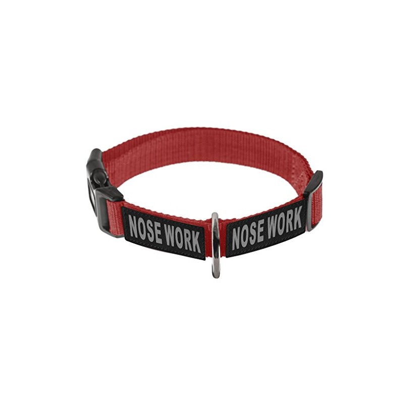 Dogline Omega Nylon Collar for Dogs with 2 Removable Nose Work Patches (Red, 20"-26")