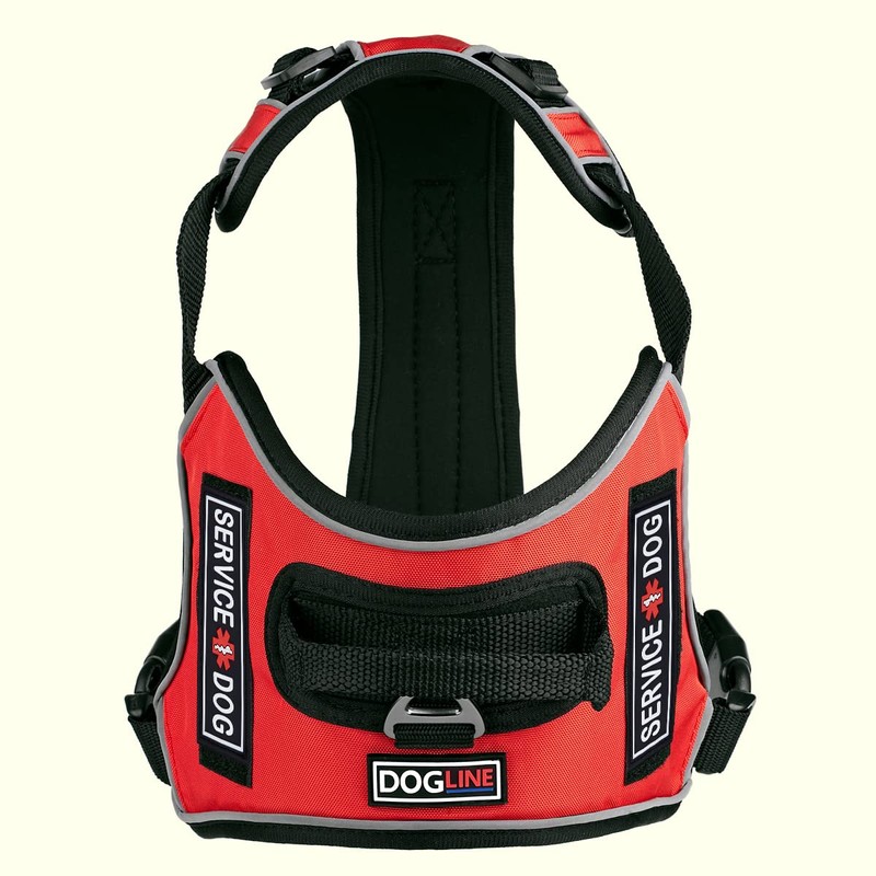 Dogline Quest No-Pull Dog Harness with 3D Rubber Service Dog Removable Patches Reflective Soft Comfortable Dog Vest with Quick Release Dual Buckles Black Hardware and Handle 36 to 45 inches Red