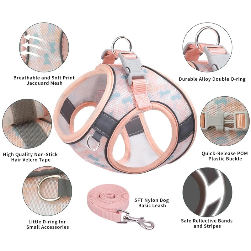 - Breathable Mesh Fabric Soft and Comfortable - The floral patterns dog harness is made with mesh fabric, which is high-density, breathable, three-dimensional, soft and comfortable, more beautiful and stylish,and can prevent chewing or tearing. It has extremely high durability,Besides,the fabric is delicate and soft, and the weaving threads are dense and not sticky to dog hair. giving pets an extraordinary wearing experience