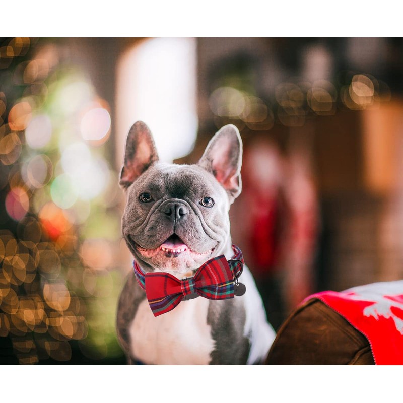 DOGWONG Red Dog Collar with Bow Tie - Red Checked Comfortable Cotton Christmas Dog Collar with Removable Bow Tie for Small Large Medium Dog