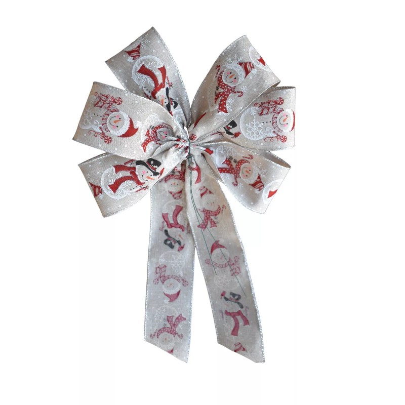 Dogwood Farm Market Snowman Wired Wreath Bow -10" across- Handmade -Natural Christmas Winter Holiday