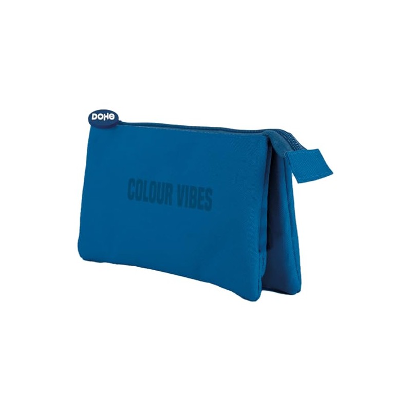 DOHE - Triple Pencil Case for School - 3 Compartments Multipurpose Pencil Case Dimensions 23 x 12 x 2.5 cm Zip Closure Made of Durable Polyester - Colour Vibes, blue, Triple (3 compartments)